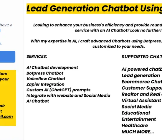 Streamline your business processes with customized AI agents. Whether it's enhancing customer support, boosting lead generation, or automating appointment settings, I've got you covered.