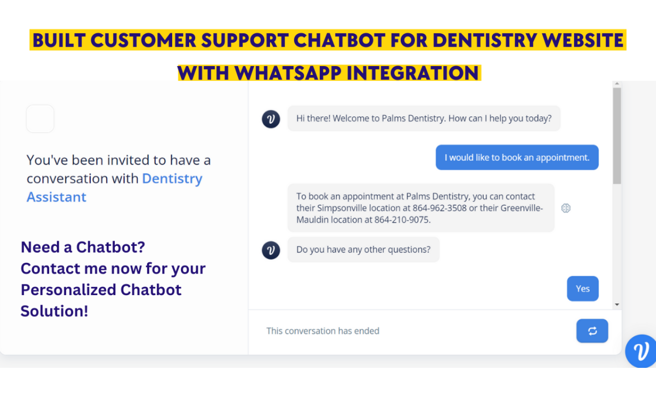 As a freelance chatbot developer, I specialize in crafting tailored solutions to meet the unique needs of businesses. If you’re ready to take your customer engagement to the next level, let’s chat about how a custom chatbot can elevate your brand!